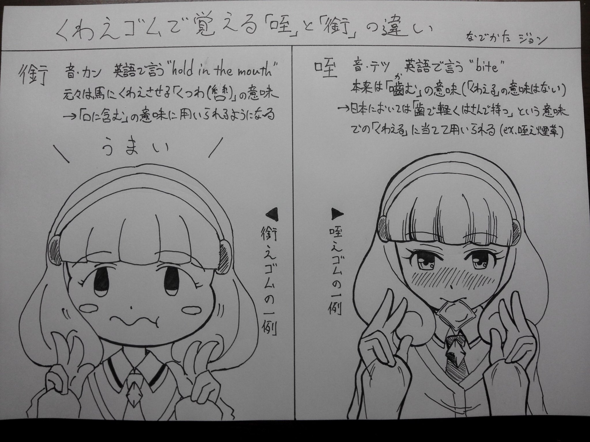 なでかたジョン 今 巷では くわえゴム が流行していますね この機会に 銜える と 咥える の違いを正しく覚えて 楽しいくわえゴムライフを送りましょう 違いがイメージしやすいように黄瀬やよいちゃんにモデルになってもらいました Http T